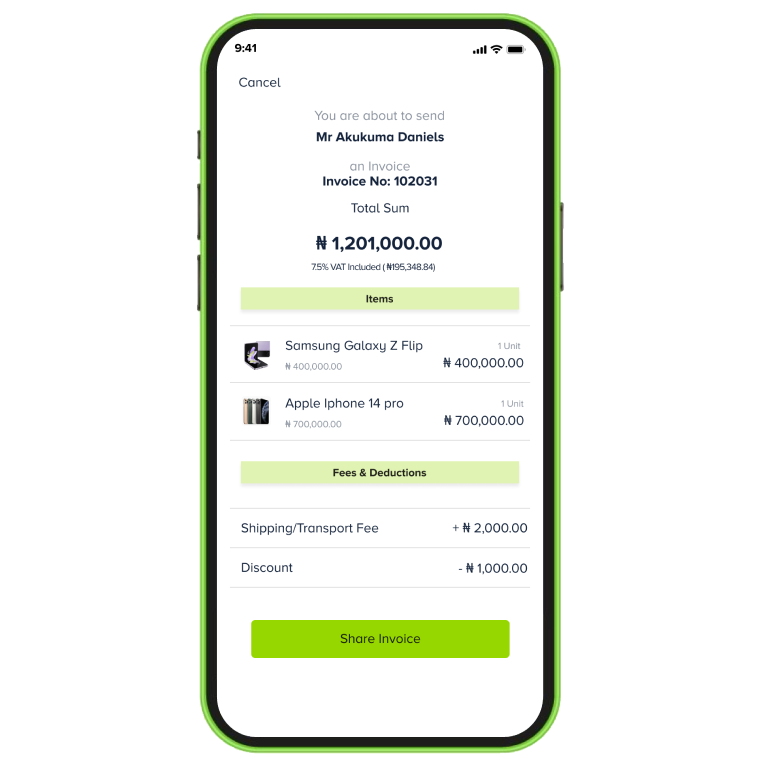 💼 Create Invoices: No more paperwork mess! You can create pro invoices on your phone and share them with your customers in minutes.