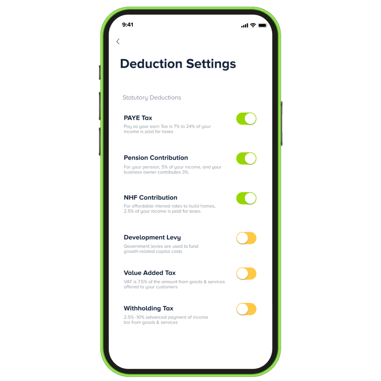 A sub-account is made available for you on your fintelle business that houses all your tax deductions and returns giving your timely update for remittance and tax payments.